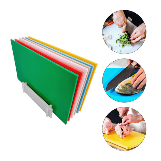 KIT DE 6 TÁBUAS DE CORTE LISAS - CORES ANVISA - 10mm X 30cm X 50cm - C/ SUPORTE